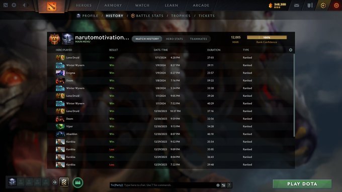 Austrian esports player Tobias "Tobi" Buchner shared a joyful event within the realm of Dota 2. He managed to surpass the 12,000 MMR milestone and confirmed it with a screenshot of his profile, which he shared with his fans on Twitter.