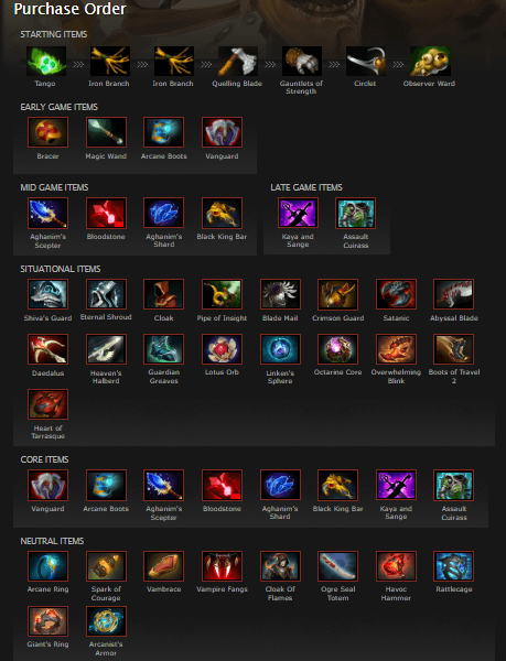 Item selection is critical in determining how much tanky the hero gets and how well he can function in the frontline. Grab Magic Stick, Tango, Quelling Blade and Iron Branch x2 for good lane sustain and last hitting. Rush for Vanguard for some early tank, and get Phase Boots for added movement and chasing. You have a good chance of absorbing magic damage with the Hood of Defiance followed by the Aghanim’s Scepter which strengthens both Quill Spray and Viscous Nasal Goo, making you a bigger threat in team fights. Pick up Crimson Guard and Black King Bar to be more survivable in the late stages of the game. This will ensure you can take both physical and magical damage. In the end, Heart of Tarrasque makes sure you remain as an unkillable tank and it guarantees you dominance in any long fights.