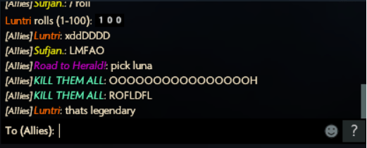 The roll function does not only serve to move the piece but rather can foster a strong competitive spirit in the team without hostility. Players can use it when they want to resolve insignificant questions, for instance, who’s gonna buy the courier or the ward. It makes the game fun and take away the probability of someone winning or loosing the match without altering the outcome of the game.