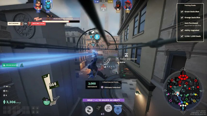 Deadlock features a set of movement mechanics that are purposeful. For instance, players can quickly navigate themselves across the map while using dashes, double jumps and rail rides. However, in order to become a pro player, it is very crucial to learn how to move around effortlessly during fights, snipe minion’s last hits and avoid attacks from your enemies.