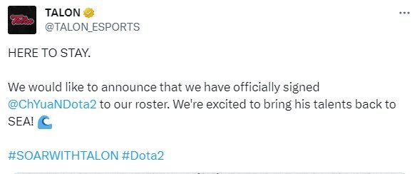 TALON ESPORTS has issued an official statement regarding the Dota 2 roster update