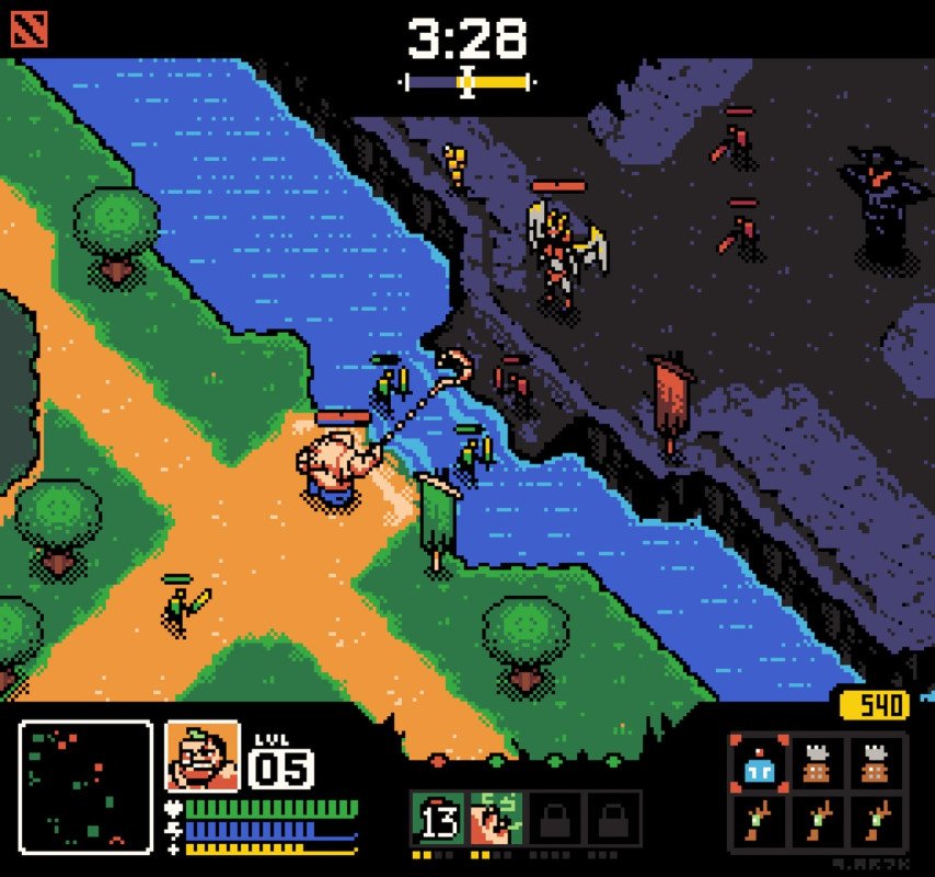 It is important to note that the miscarriage scene is handled effectively without wasting time on the guts and overly graphic depictions of the classic horror film. Scenes in pixel art enable to overcome thanatophobia and higher functional resolution in action-packed interesting moments from the video game and sometimes moderate the tension by injecting some nostalgia. This is also what the use of pixel art for scenes helps them do, allowing the artists to include the whole map view or several regions radiants or dire sides in detailed pixel art imagery.