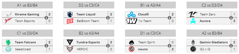 Sixteen teams play eight Bo3 head to head matches to determine main event bracket placement