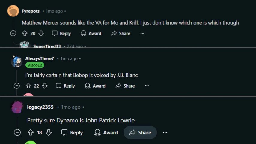 Mo и Krill — Здесь фанаты не смогли прийти к единому мнению, называя и Мэттью Мерсера, и Рэя Чейза как возможных актёров для этих персонажей.