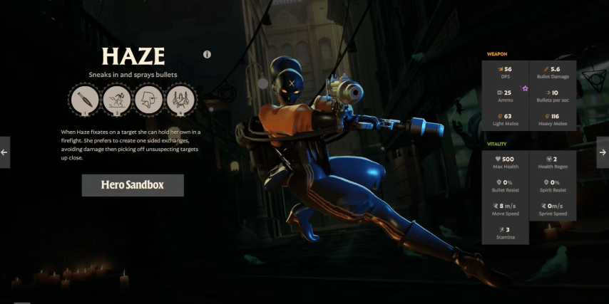 Haze - чрезвычайно хитрый и скрытный герой Deadlock, который может быть очень смертоносным. Она обладает огромной силой и использует дальнобойное оружие с необычайной точностью.