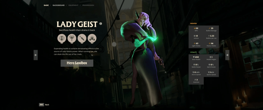 Леди Гейст - подходящий выбор для игроков, которые умеют в одиночку побеждать врагов и отлично справляются с такими сражениями. Ее Life Drain прикрепляется к противнику, забирая его здоровье и обеспечивая ей пропитание во время боя, которое при правильном использовании может стать смертоносным оружием. Бомба сущности также жертвует частью своего здоровья, чтобы нанести противникам большой урон. В своей конечной точке она обменивается здоровьем с вражеским игроком, что в решающие моменты может переломить ход матча. Победа над врагами с помощью Lady Geist - это игра на терпение и тайминг, довольно сильно отличающаяся от других героев, но как только вы освоите этого персонажа, вам не будет равных в дуэлях.