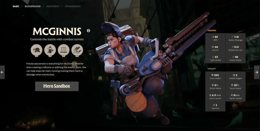 На первый взгляд McGinnis может не показаться могущественной, но её набор утилитарных навыков делает её скрытой жемчужиной для соло-игроков. Её Turret может наносить урон как Труперам, так и вражеским игрокам, особенно при усилении с помощью Extra Charge и Rapid Charge для множественного развёртывания. Способность Wall изолирует противников, эффективно контролируя поле боя. Хотя её Barrage требует навыка прицеливания, он наносит значительный урон. McGinnis превосходна в контроле объектов, что делает её незаменимой для стратегической одиночной игры.