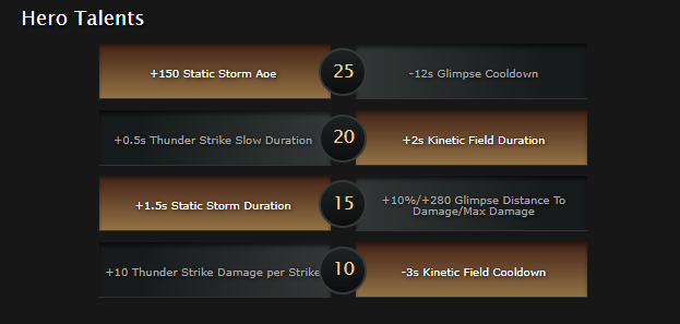 Уровень 15: +1.5 секунды к длительности Static Storm или усиление Glimpse.