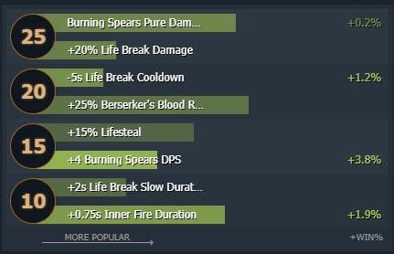Huskar не особо полезны на 10-ом уровне, по этому игнорируем их, наши способности более приоритетны. На 15-ом уровне лучше брать урон урон к Buring Spear если вы сумели задоминировать. Остальные - как написано ниже.
