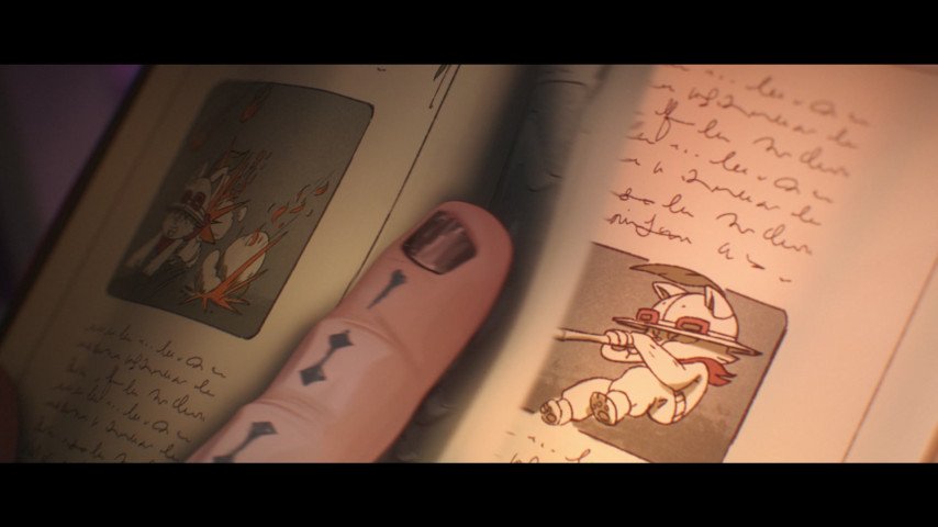 Тимо в книге Силко: Один из приспешников Силко листает книгу с изображением Тимо, что подчеркивает важность персонажа даже в мире Аркейна.