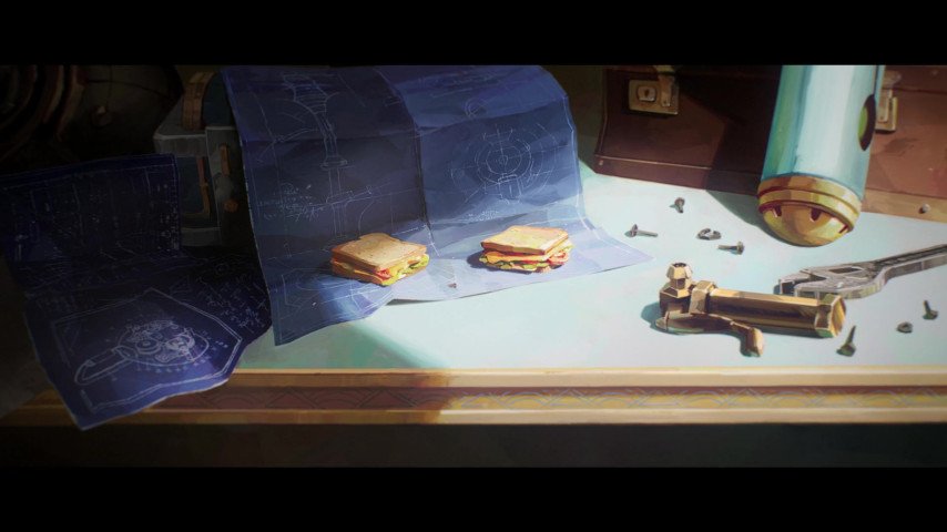 Чертеж молота Джейса: В квартире Паудер среди прочего видны бутерброды и чертеж молота, символизирующего семейное наследие Джейса. Его молот — важный атрибут, ставший символом его рода и мощного оружия в игре.