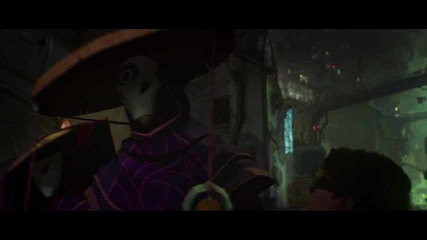 Орден Кинкоу в Зауне: Спускаясь в подземный Заун, герои встречают двух фигур в масках — вероятно, членов ордена Кинкоу из Ионии, стремящихся сохранять баланс между духовным и физическим мирами.