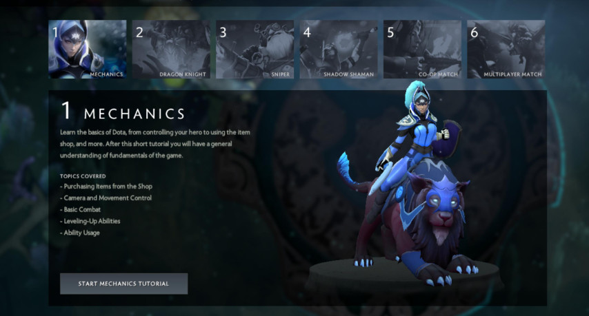 Туториал проводит игрока через самые важные элементы, необходимые для начала комфортной игры в Dota 2.
